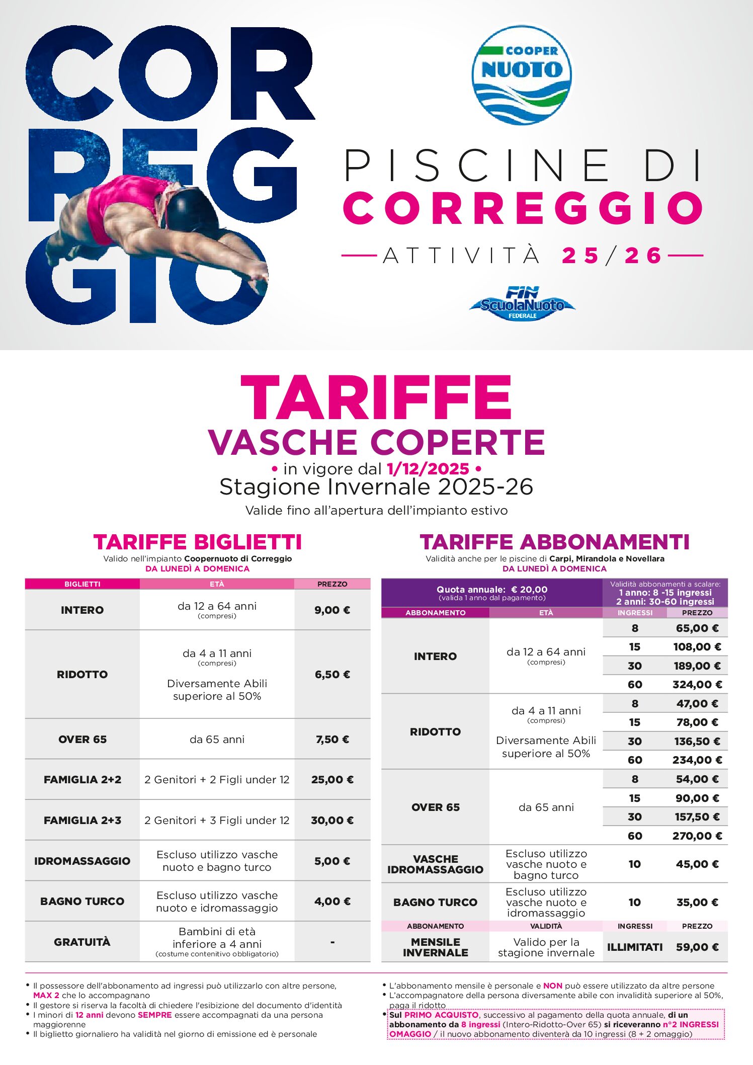 Lezioni da 45 minutiLe attività si svolgono in vasca con profondità 160 cm