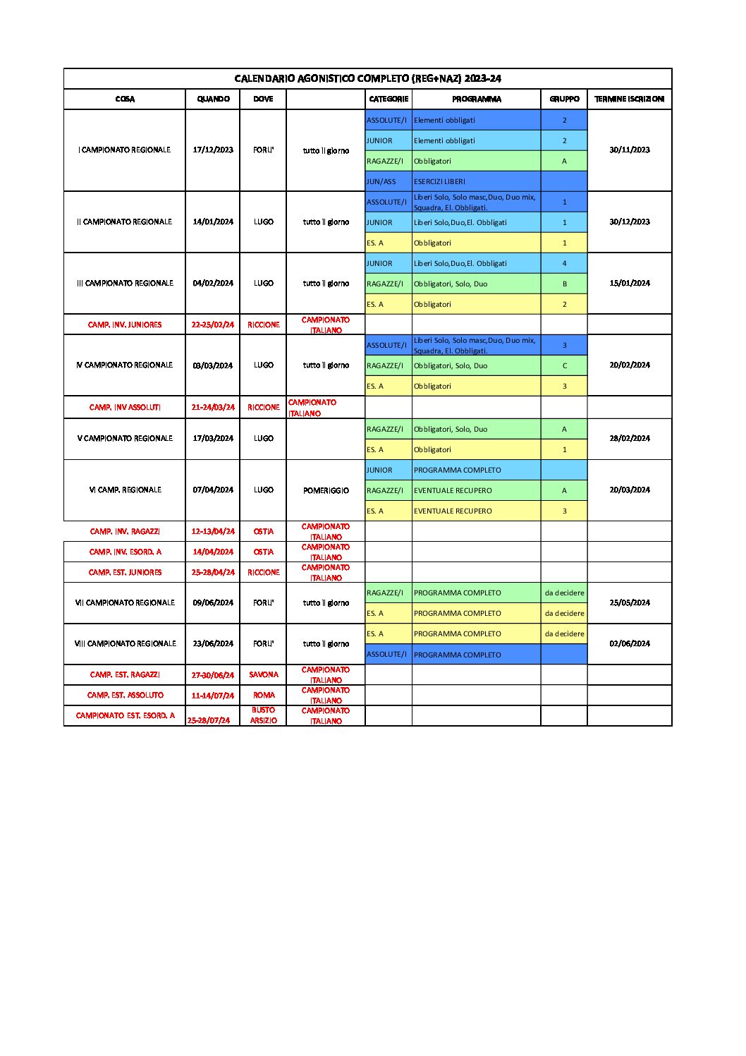 3^ Prova Campionato Regionale - 18/01/26 DATA: 18 Gennaio 2026 LUOGO: Forlì CATEGORIA: - Esordienti A, Obbligatori - Juniores, Obbligatori + liberi - Assolute, Obbligatori + liberi PROGRAMMA ORARI: Mattina: 08:30 - 16:00