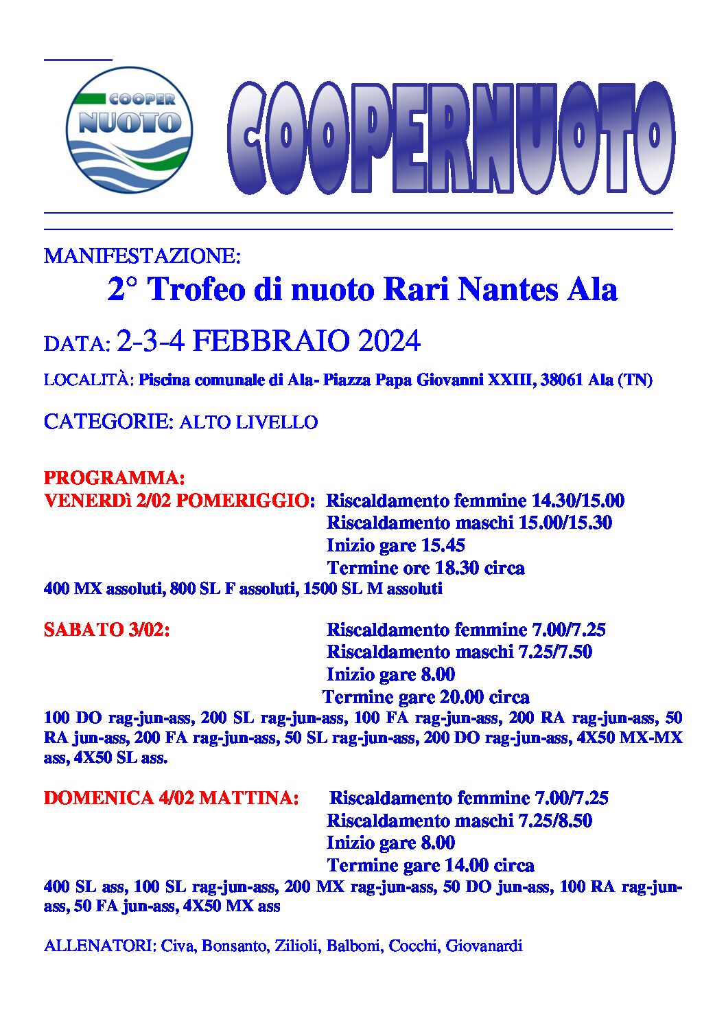 2° Trofeo Rari Nantes Ala 2-3-4 febbraio – RISULTATI