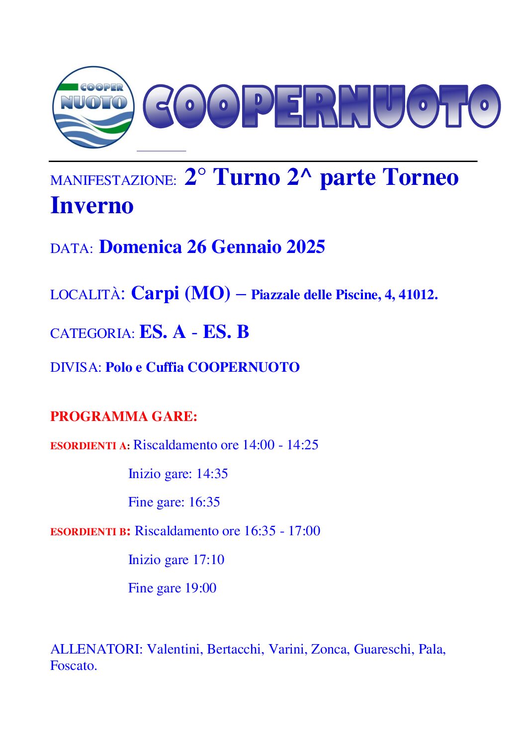 2° TURNO 2° PARTE TORNEO INVERNO – 26/01/2025