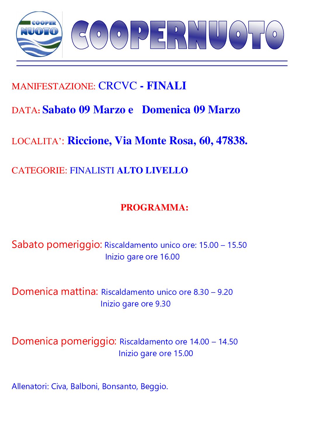 MANIFESTAZIONE:  CRCVC – FINALI