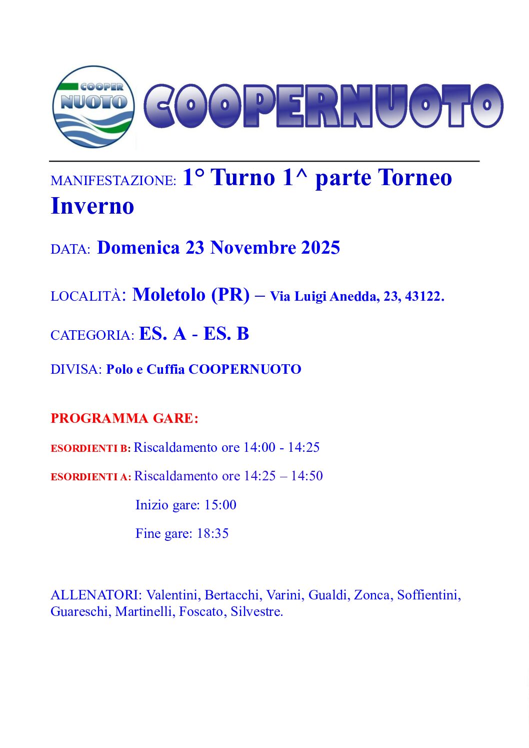 MANIFESTAZIONE: 1° Turno 1^ parte Torneo Inverno