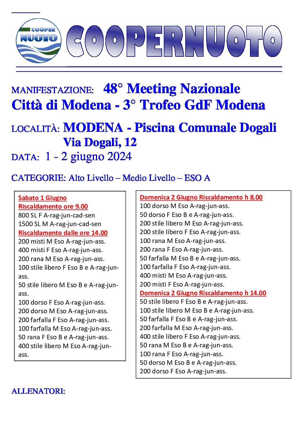 Trofeo Città di Modena – 1 e 2/06/2024